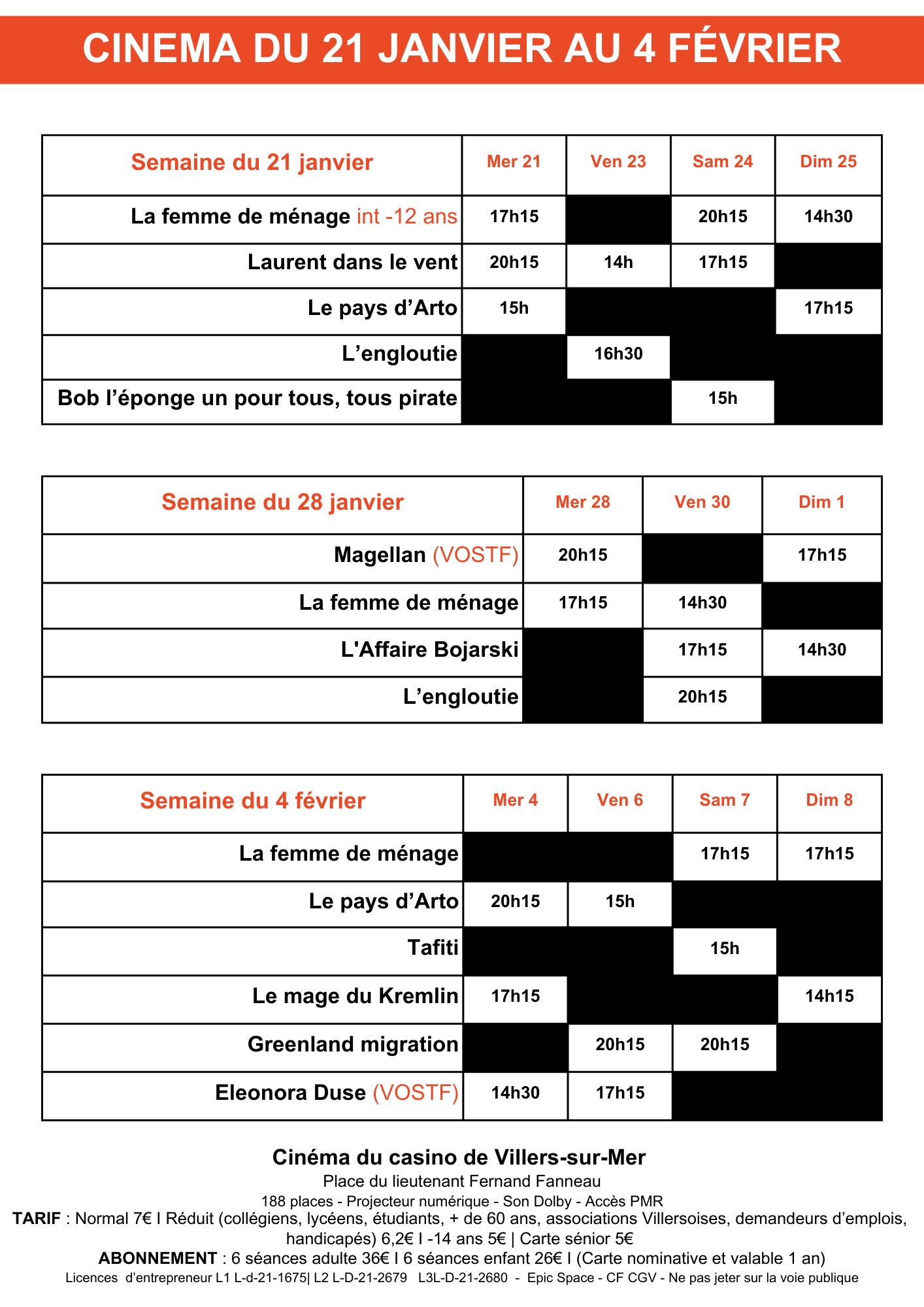 Téléchargez le programme du Cinéma de Villers-sur-Mer du 21 janvier au 4 février