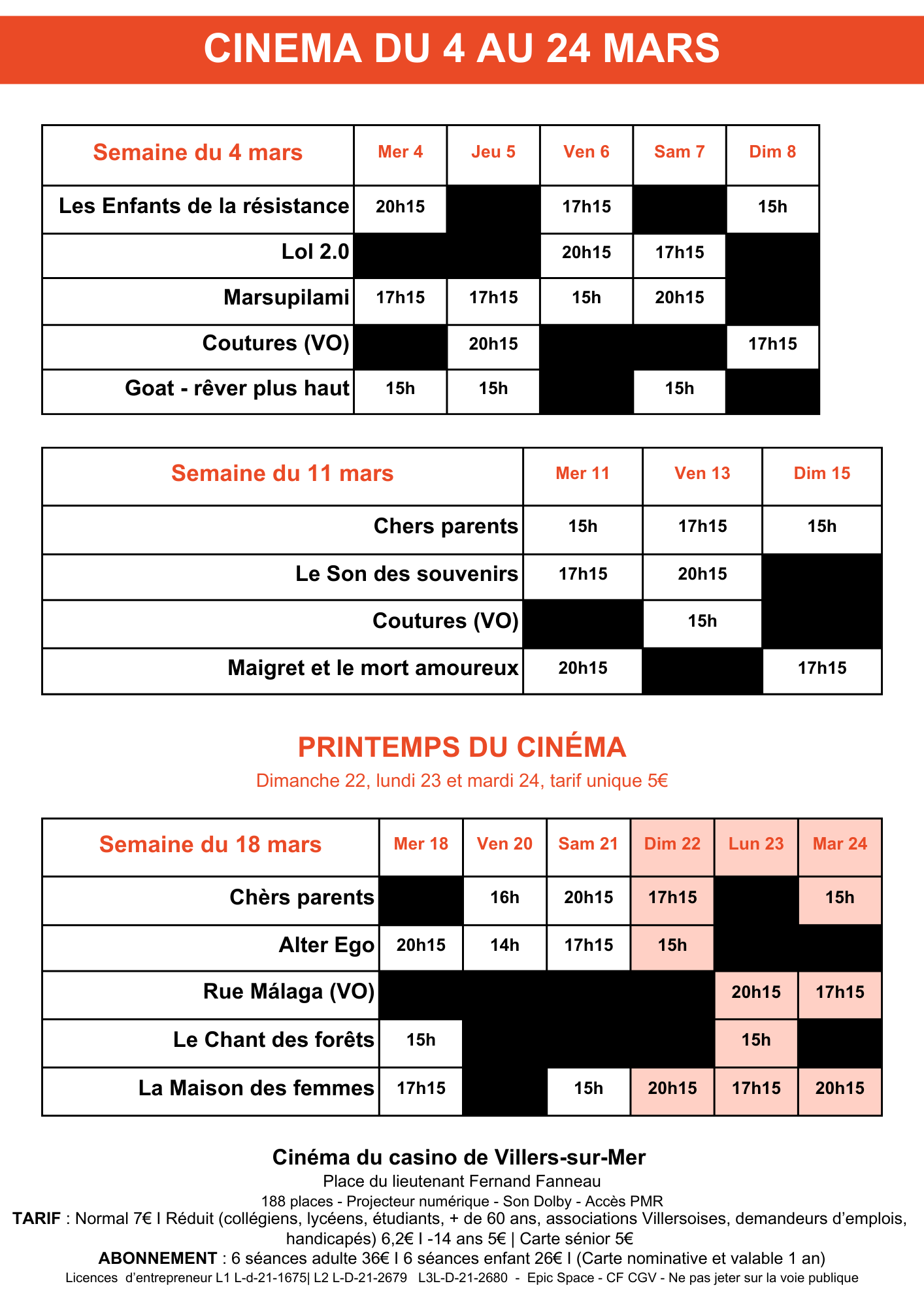 Téléchargez le programme du Cinéma de Villers-sur-Mer du 4 au 24 mars