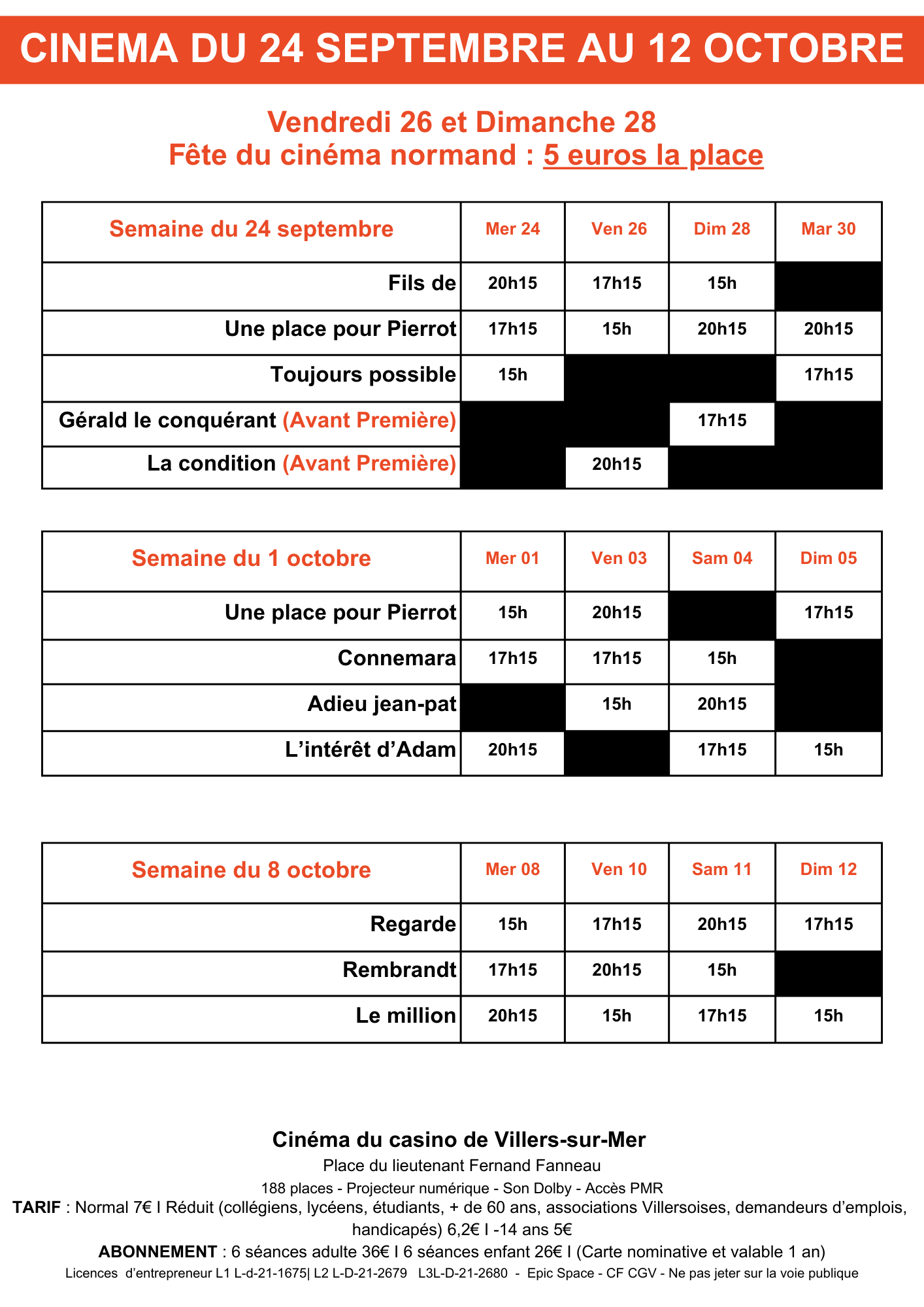Téléchargez le programme du Cinéma de Villers-sur-Mer du 24 septembre au 12 octobre 2025